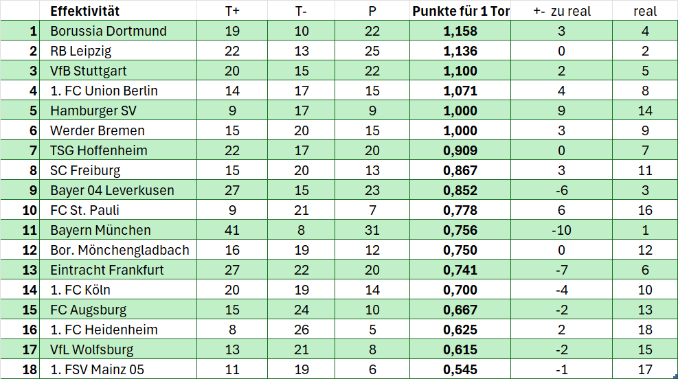 | 3 | Borussia Dortmund | 12 | 21 | 11 | 10 | 25 |