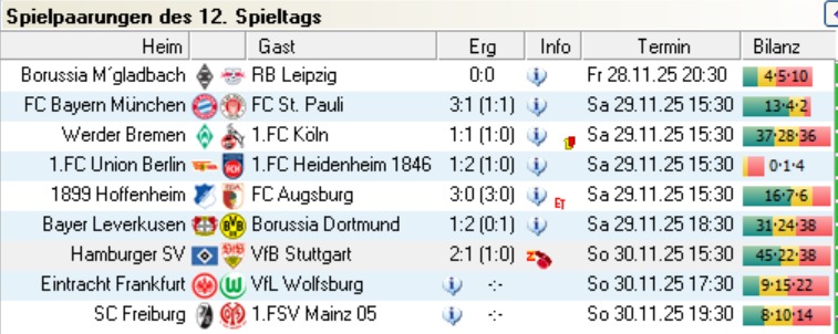 | 1 | Bayern München | 12 | 44 | 9 | 35 | 34 |